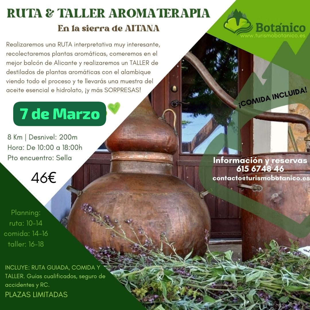 Ruta interpretada con recolección de plantas aromáticas y posterior destilación llevándote tu muestra de aceite esencial